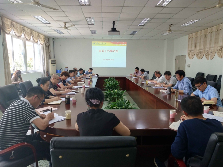本网讯((文、图/王王)5月23日下午,学校召开申硕工作推进会,党委副书记、校长王辉,副校长杜学元出席会议,人事处、科技与学科建设处、财务处、相关教学院负责人参加会议,会议由校长王辉主持。