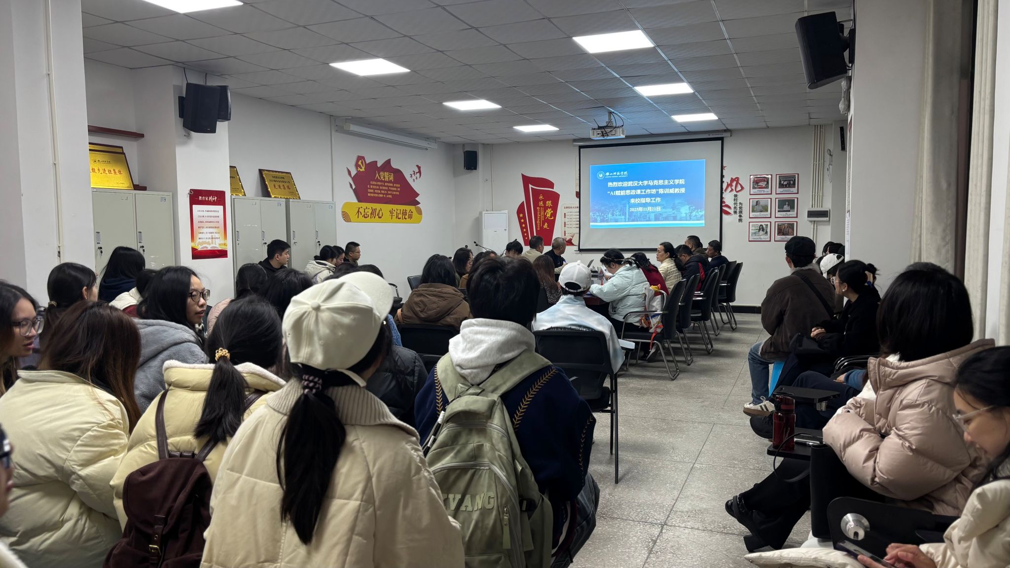 本网讯(图、文/李宁)10月21日上午,武汉大学马克思主义学院实验中心主任陈训威来校我校马院作了题为“AI赋能思政课教学路径方法”的专题报告。报告由马克思主义学院院长郑文杰主持,马院师生代表及四川科技职业学院教师代表共100余人参加。